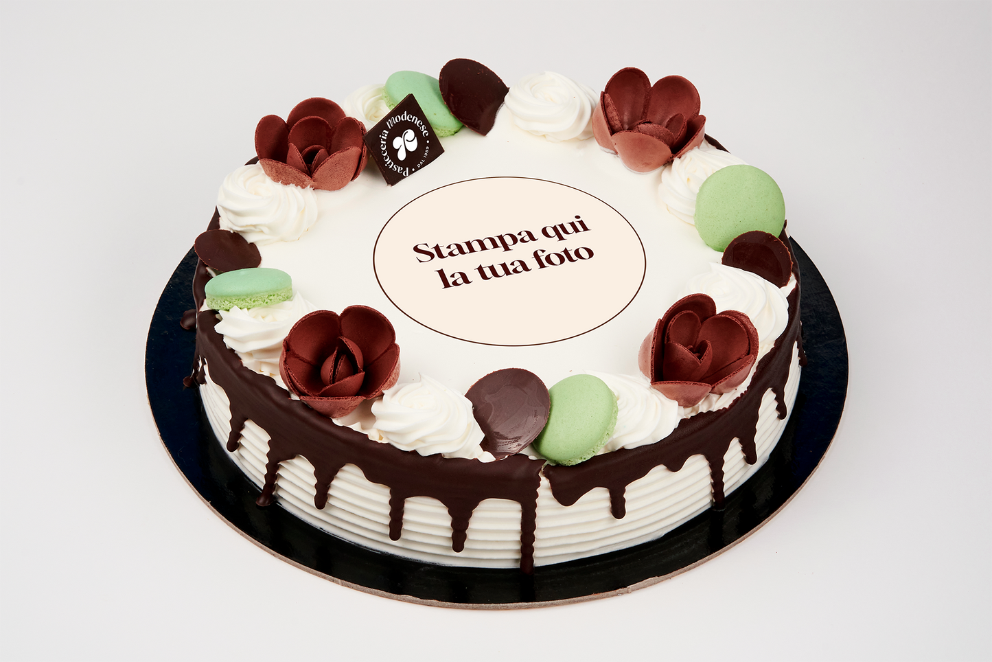 Torta di forma rotonda di Pasticceria Fresca, con base di Pan di Spagna, personalizzabile con la vostra immagine preferita!